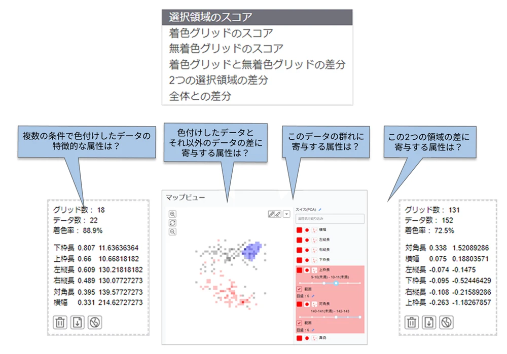 データの集団を分けている属性は何か?不良データと正常データを分けている属性は何か?スコアで、属性の寄与度を分析することができます。