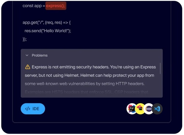 Aikido Securityは、IDE上でSASTに基づくセキュリティアドバイスをリアルタイムに提供します。