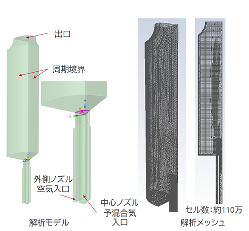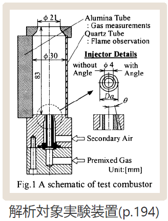 - 同軸インジェクタが設置され,中央から水素-空気予混合気,周囲から空気が流入