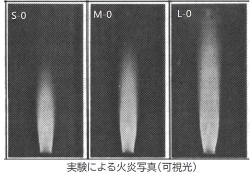 解析結果同様,S-0,M-0,L-0の順で火炎の長さが増大(p.196)