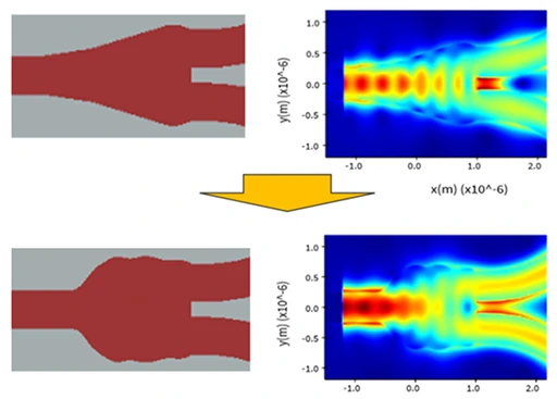 - 単目的最適化の手法により、Y分岐導波路の挿入損失を0.39dBから0.10dBに改善しました。