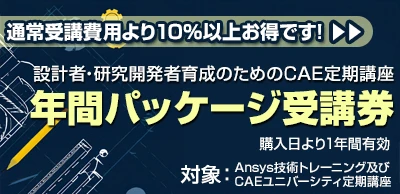 基礎から実用、発展までレベル分けされた各分野の講座をご自身の習熟度に合わせてお選びいただけます。各分野の第一人者や経験豊富な講師がCAEツールの背景にある理論をわかりやすく解説します。現場のなぜ?を理論的に理解したい方、実践に役立つ具体的なヒントを得たい方に役立つ講座が多数そろっています。