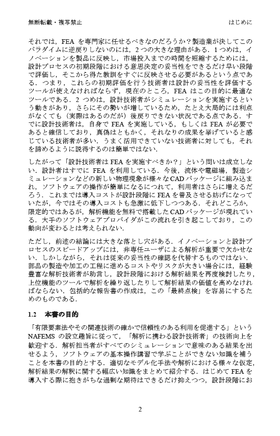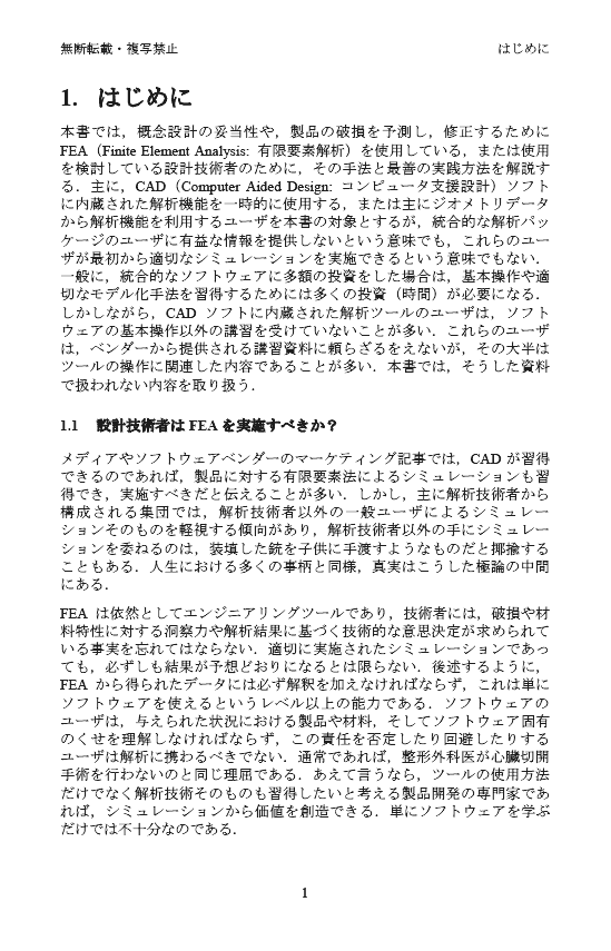 | 1.1 設計技術者はFEAを実施すべきか? 1.2 本書の目的 |