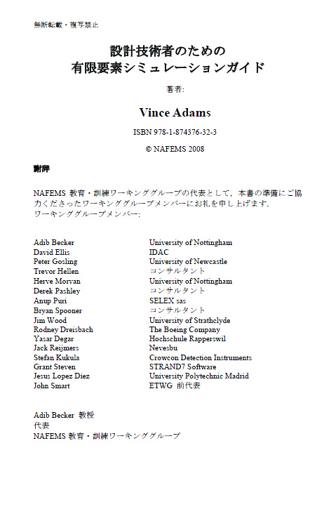 13.1 CADソフトウェア以外のFEツールについて 13.2 NAFEMSの文書 13.3 インターネット上の情報 13.4 その他の参考資料 13.5 職場内教育と専門家のサポート 13.6 本書のまとめ |