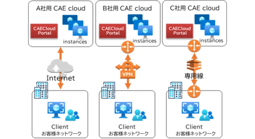 ご利用クラウドとCAEクラウドとの相互接続という形での運用は可能です。