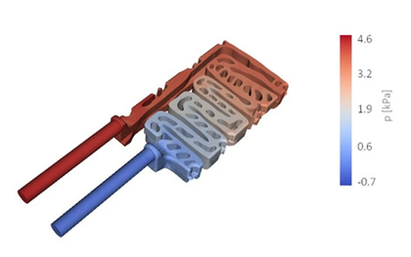 図7: GLMのジェネレーティブデザインにおける冷却チャネル内の圧力分布