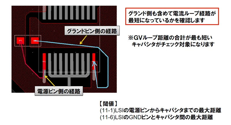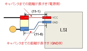LSI部品の電源ピンにチェックデカップリングキャパシタが正常に接続しているかチェック