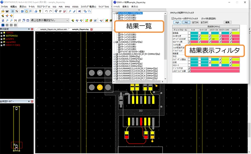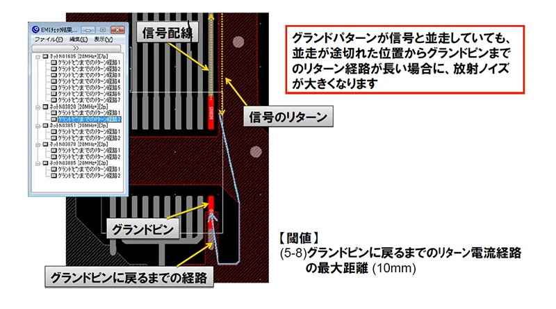 - 理論に基づいたルールチェックでPCBレアウトの妥当性を自動判別できます。