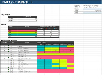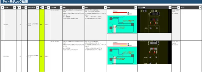 DEMITASNXでは2層基板チェックの結果をExcel形式のレポートで出力することが可能です。これにより設計者間でのコミュニケーションを円滑に実施することが可能です。