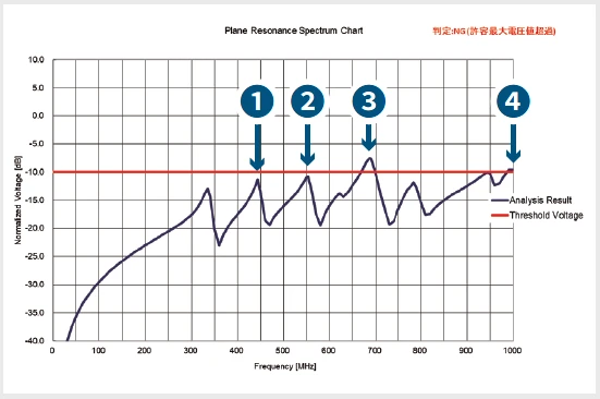 - 問題が発生しやすい周波数を設計段階で把握・対策することができる