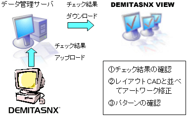 DEMITASNXのチェック結果を関連する部署やパートナー企業のエンジニアと共有するためのビューワーです。DEMITASNX VIEWはDEMITASNXでチェックした結果をDEMITASNXと同様に表示することができます。チェック結果を別の場所で別の担当者が確認したり、チェック結果を参照し指示を伝えたりすることが安価で簡単に行えます。