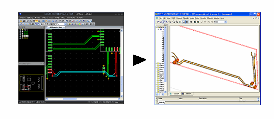 ドイツCST社製の電磁界解析ツールMW STUDIOとのリンクにより、自社製品に特化したEMIチェック閾値の検討やEMIチェックエラー発生時に厳密な解析が可能です。