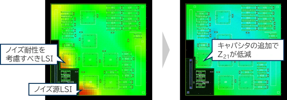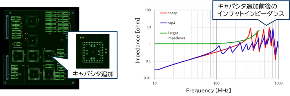 を確認することができ、キャパシタ配置やプレーン構造の改善ポイントを早期に特定できます。