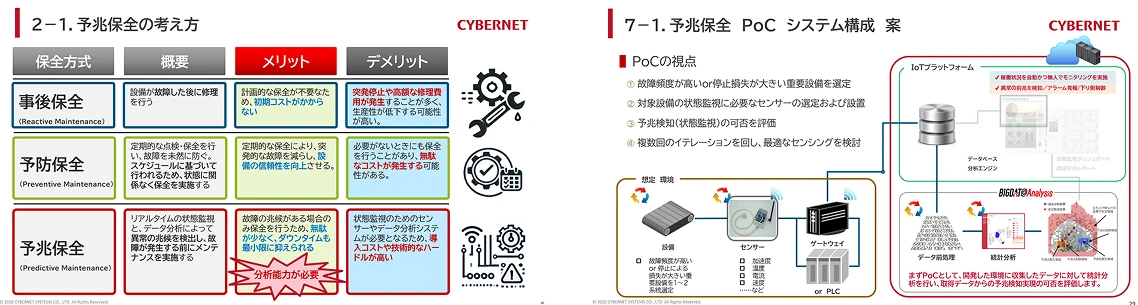 本講演では、従来の事後・予防保全と比較しながら導入の壁を整理し、直感的なデータ可視化・要因分析によって現場担当者自身が予兆保全を進められるアプローチを解説します。