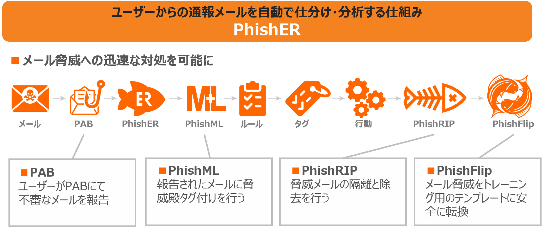 さらに、通報されたメールのリンクや添付ファイルをVirusTotalと連携して自動で検査・隔離できる仕組み(PhishER)も高く評価している。