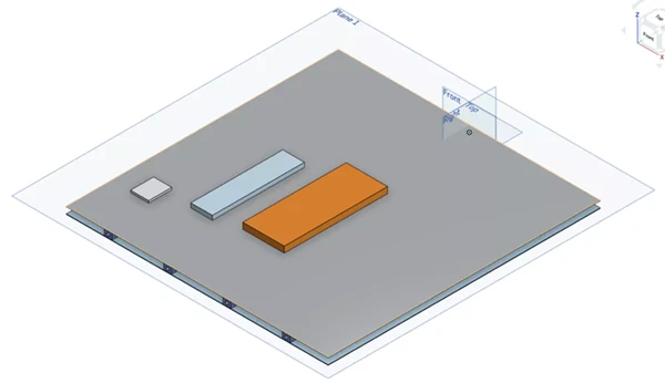 欧州宇宙機関(ESA)は、数値シミュレーションに ESATAN-TMS を使用しました。これはESAが開発し利用している熱モデリング用シミュレーションソフトウェアです。 この熱シミュレーションでは、パネル上面のボックスは衛星ミッションで使用される電子モジュール部品を表しています。各ボックスは、与えられた熱流束に従って発熱し、その熱は配管内の熱伝導を通じて全体へと散逸していきます。