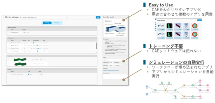 CAEのワークフローをアプリに埋め込めば、設計者がCAEソフトウェアを直接操作せずとも、必要な検討を進められる環境を構築できます。