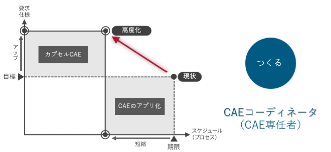 - 知見をカプセルCAEに変えていく といった仕組みづくりを担い、設計者が「使いたい」と思えるCAEを提供します。
