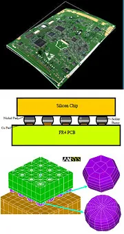 プリント基板、はんだの有限要素モデルと実験から疲労モデルを作成し、バーチャル検証を行った事例です。はんだの配置や体積を設計変数とし、反り量の最小化を行っています。