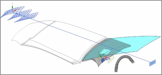 HUDスペックとアイポイント、WS、ミラーの中心点を指定するだけで、光学系を自動作成する機能
