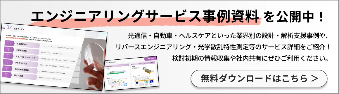光学設計・解析、光源・材料特質の測定、および教育・コンサルティングなど、光学分野におけるお客様の課題を解決する委託サービスを幅広く提供しております。