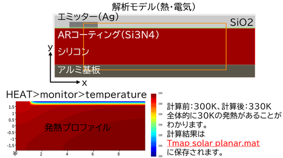 太陽光の吸収を解析し、光生成率・熱生成率を算出します。 - 熱シミュレーション(HEAT)