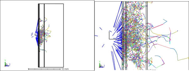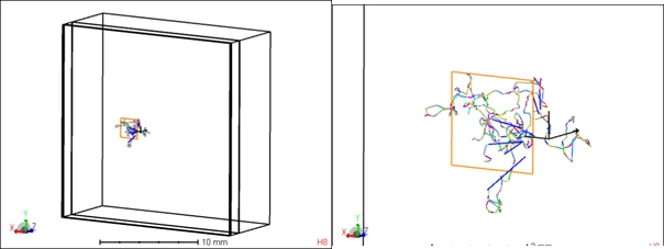 図4 : 皮膚の中を光線が伝搬する様子 (右図は拡大版)