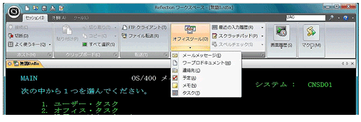 「ワークスペース」上に複数のホスト端末画面やWebブラウザページをタブ付きドキュメントとして表示できます。「リボンユーザインターフェース」によりReflection独自の機能へのアクセスを簡単にしたほか、Microsoft Office との連携もすばやく行なえるようになっており、ユーザの作業効率を向上させます。