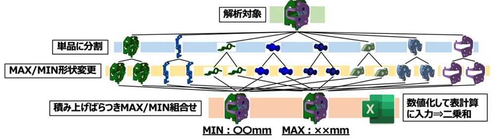実際トライアル解析を行ってみると、従来の手作業では数時間を要していた最大・最小形状の作成や積み上げ値の確認が、CETOLを使えば数十分で完了することがわかりました。誤った操作もエラーとして即座に指摘されるため、後工程でのトラブルや手戻りのリスクを大きく減らせることを実感しました。