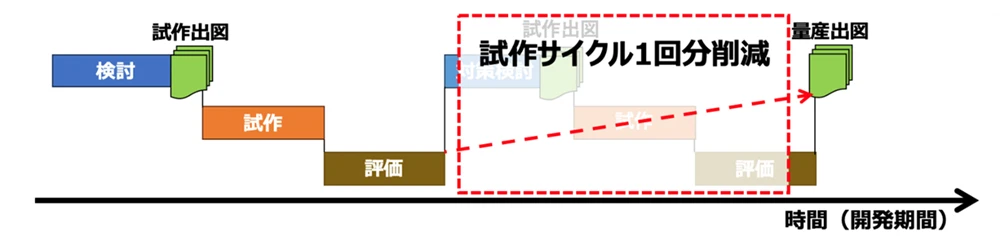 効果 1 ばらつき不具合の未然防止により試作サイクルを1回削減