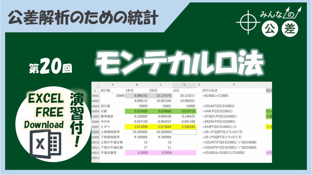 Excel で様々な累積公差を計算してみよう!Excel の演習用ファイルと、模範解答ファイルを無料配布
